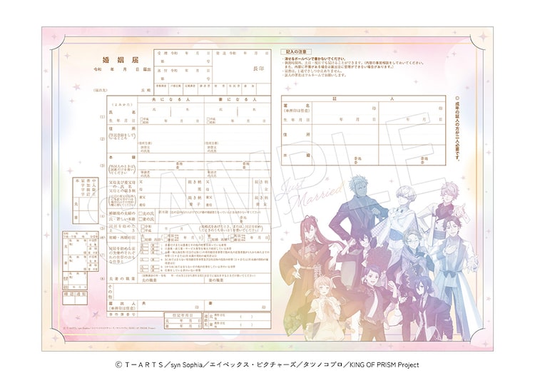 アニメ「KING OF PRISM -Dramatic PRISM.1-」の婚姻届が登場。11月9日・10日に開催される「アニメイトガールズフェスティバル2024」の中外鉱業ブースおよび、中外鉱業のECサイト・Chugaionlineで販売される。