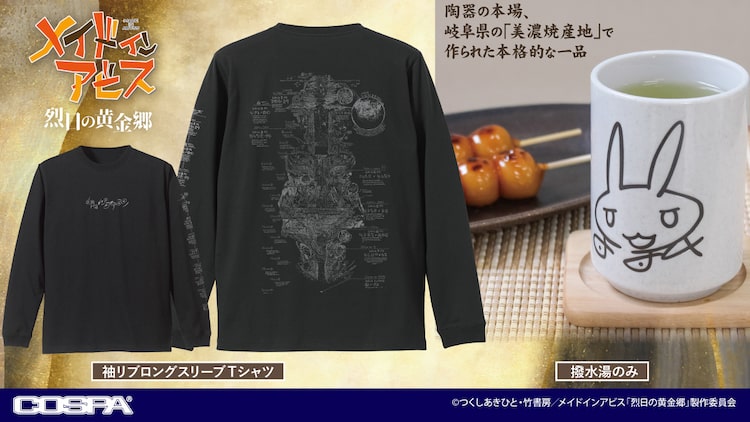 つくしあきひと原作によるTVアニメ「メイドインアビス 烈日の黄金郷」より、ナナチのサイン入り湯呑みとアビスの地図が描かれたロングスリーブTシャツが登場。コスパほかで予約を受け付けている。
