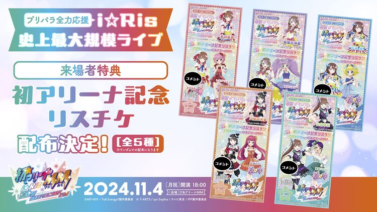 i☆Ris初のアリーナ公演「i☆Ris 12th Anniversary Live ‐初☆アリーナMM(マジみて)‐」の来場者特典として、アニメ「プリパラ」とコラボした「初アリーナ記念リスチケ」が配布される。