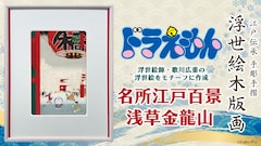 藤子・F・不二雄「ドラえもん」を題材にした浮世絵シリーズの新作が登場。今回は歌川広重の「名所江戸百景」より、「浅草金龍山」をモチーフに描かれる。