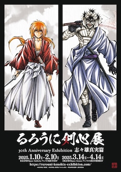 和月伸宏「るろうに剣心─明治剣客浪漫譚─」の原画展「るろうに剣心展 30th Anniversary Exhibition 志々雄真実篇」が、2025年1月10日から2月10日まで東京・Space Galleria、3月14日から4月14日まで大阪・Space Gratusで開催される。イベントのキービジュアルとして、和月が緋村剣心と志々雄真実のイラストを描き下ろした。