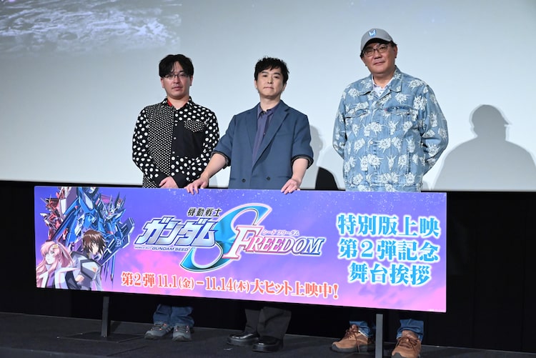 劇場アニメ「機動戦士ガンダムSEED FREEDOM」特別版の上映を記念した舞台挨拶が、本日11月1日に東京・グランドシネマサンシャイン池袋で実施され、キラ・ヤマト役の保志総一朗、福田己津央監督、プロデューサーの仲寿和が登壇した。