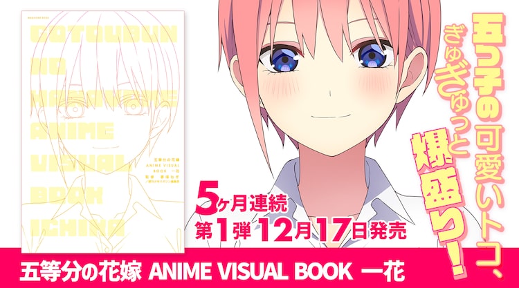 春場ねぎ原作によるアニメ「五等分の花嫁」のアニメビジュアルブックが12月より5カ月連続刊行。第1弾「五等分の花嫁 ANIME VISUAL BOOK 一花」が12月17日に発売される。