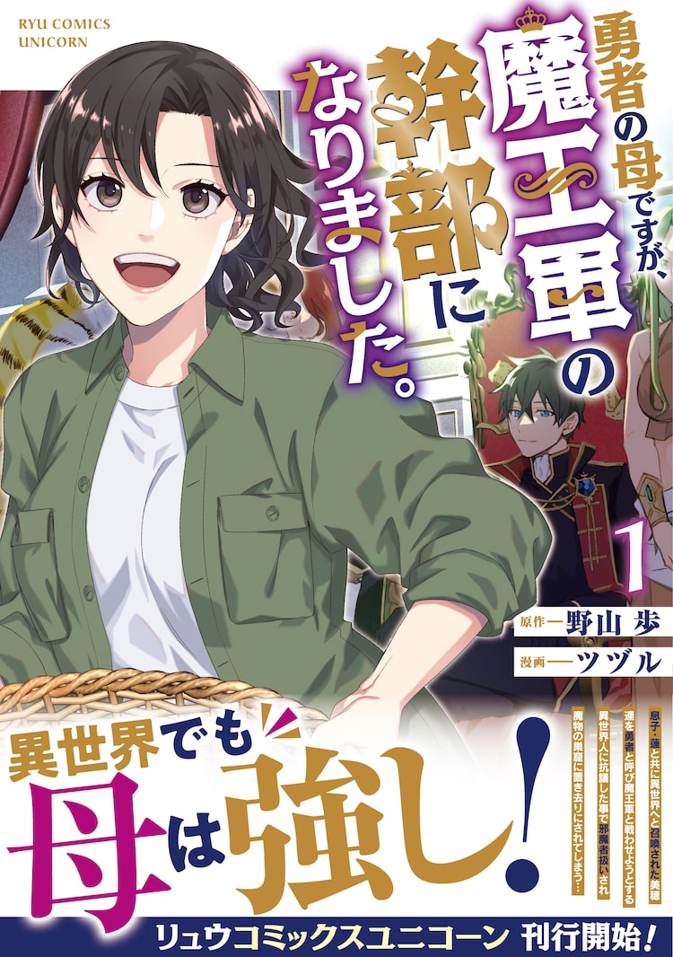 なお「勇者の母ですが、魔王軍の幹部になりました。」は、異世界系Web小説のコミカライズを中心にした徳間書店のレーベル・COMICユニコーンの単行本第1弾。単行本レーベル・リュウコミックスユニコーンからの発売で、肥前文俊原作による海老猫道楽「異世界⇔地球間で個人貿易してみた」1巻、森脇かみん原作による山口陽史「召喚勇者、魔王になる~魔王(オレ)は勇者(オレ)に倒されるために魔王軍を作ります~」1巻も同時発売された。