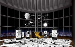 展覧会は全4章で構成。「火の鳥」の主要12篇にまつわる800点以上の原画や関連資料が展示される。“プロローグ”となるエントランスでは、窓枠、床面、大型モニターを駆使し、「火の鳥」の世界観をダイナミックに展開。中央モニターにはデザイナー・中村勇吾が手がけた映像が映し出され、展覧会の企画・監修を務めた生物学者の福岡伸一氏が唱える「動的平衡」のイメージに重ねて、火の鳥が飛翔する様子が描かれる。左右に配置された6基のモニターには「黎明編」から「太陽編」までの12篇の中から、中村が厳選したシーンがランダムに表示される。
