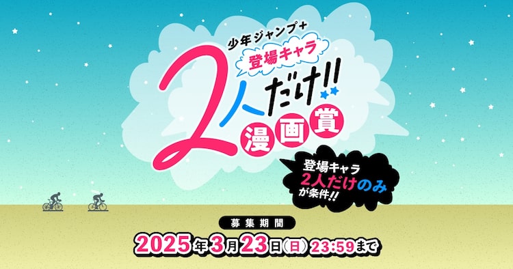 少年ジャンプ+による新たなマンガ賞「少年ジャンプ+ 登場キャラ2人だけ!漫画賞」が創設された。本日12月13日より募集を受け付けている。