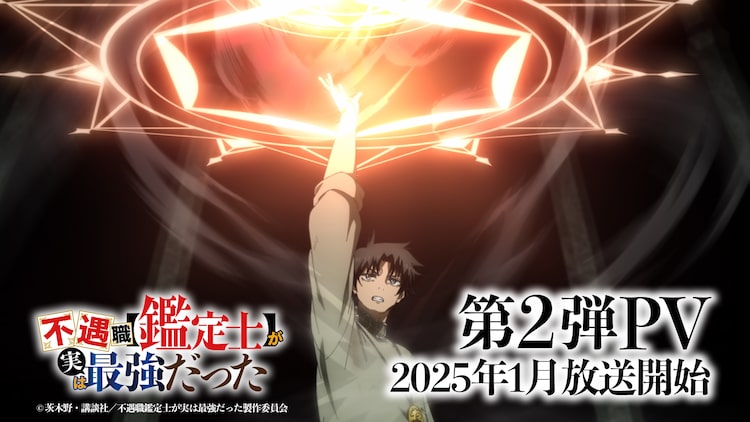 「不遇職【鑑定士】が実は最強だった」は茨木野の小説を原作とする異世界ファンタジー。最弱職で不遇職の鑑定士・アインが、世界樹の精霊ユーリと賢者ウルスラに出会い、最弱職から成り上がっていくさまが描かれる。アイン役は戸谷菊之介が務め、2025年1月9日より放送される。第2弾PVではオープニングテーマのASTERISM「Crescendo」、エンディングテーマの22/7「ロックは死なない」も聴くことができる。