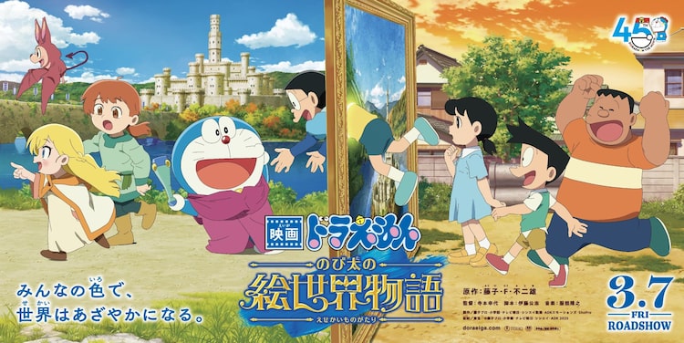 2025年3月7日公開の「映画ドラえもん のび太の絵世界物語」は、「映画ドラえもん」シリーズ45周年記念作品。絵に描かれた中世ヨーロッパの世界・アートリア公国を舞台に、ドラえもんとのび太たちが“絵の世界”で出会った仲間たちと幻の宝石を巡り強大な敵に立ち向かう。