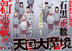 「それでも町は廻っている」「木曜日のフルット」などで知られる石黒が、四季賞でデビューして以来初めて同誌で連載する「天国大魔境」は、美しい壁に囲まれた穏やかな世界で暮らす少年少女たちを描く物語。少年・トキオはある日、「外の外に行きたいですか?」というメッセージを受け取る。不思議に思うトキオだが、ともに暮らす少女・ミミヒメに「外がどうなっていると思う?」と問いかけられ、壁の外が気になり始めるが……。初回は一挙2話が掲載された。