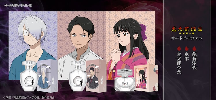 水木しげる原作によるアニメ映画「鬼太郎誕生 ゲゲゲの謎」に登場する鬼太郎の父、水木、龍賀沙代をイメージした香水が、フェアリーテイルより発売される。