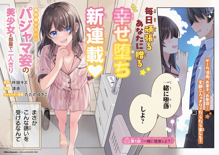 叶田キズ原作による漆赤の新連載「無防備かわいいパジャマ姿の美少女と部屋で二人きり」が、本日1月16日にガンガンONLINEのアプリ版でスタートした。