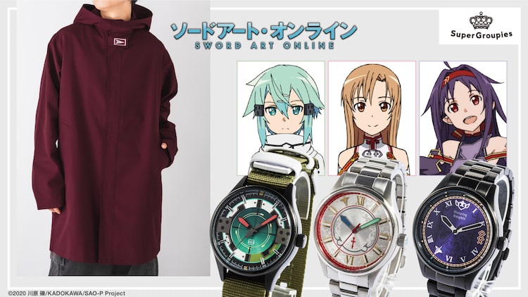 アニメ「ソードアート・オンライン」に登場するアスナ、シノン、ユウキをイメージした腕時計、アインクラッドでのアスナをイメージしたアウターが、SuperGroupiesより発売される。