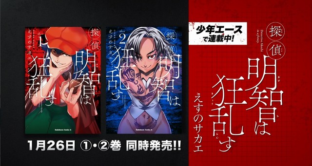 「未来日記」「ビッグオーダー」のえすのサカエによる最新作「探偵明智は狂乱す」1・2巻が、本日1月26日に同時発売された。