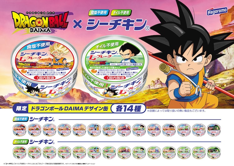 鳥山明原作によるTVアニメ「ドラゴンボールDAIMA」と、はごろもフーズの「シーチキン」のコラボデザイン缶が、3月1日より販売される。