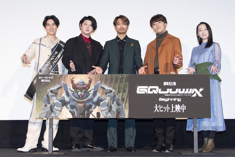 「機動戦士Gundam GQuuuuuuX(ジークアクス) -Beginning-」の「大ヒット御礼舞台挨拶第2弾」が本日3月8日に開催。イベントにはシュウジ・イトウ役の土屋神葉、シャリア・ブル役の川田紳司、エグザベ・オリベ役の山下誠一郎、コモリ・ハーコート役の藤田茜、シャア・アズナブル役の新祐樹が登壇した。