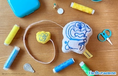 ドラえもんがネズミに追いかけられるぬいぐるみメジャー、刺繍で表現