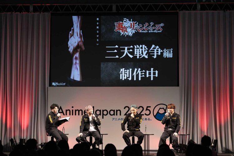 和久井健原作によるTVアニメ「東京リベンジャーズ」の放送5周年を記念したイベントステージが、本日3月22日に開催された「AnimeJapan 2025」内で行われ、花垣武道役の新祐樹、佐野万次郎役の林勇、龍宮寺堅役の福西勝也、松野千冬役の狩野翔が登壇した。