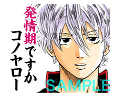 スタンプには銀時、新八、神楽といった万事屋メンバーをはじめ、真選組の面々、桂、高杉といったキャラクターたちが勢揃い。銀時の「発情期ですかコノヤロー」をはじめおなじみのセリフもスタンプ化されているほか、「チーズ蒸しパンになりたい」と鼻をほじる空知の自画像を使用したスタンプも用意されている。購入には240円または100コインが必要。