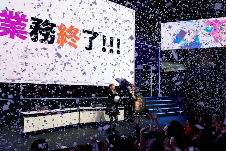 最後に高橋と芹澤がファンに向けてメッセージを送る。そして2人はステージ中に取り組んでいた“残業”の成果をお披露目。高橋が銅鑼を鳴らすとともに、芹澤がお手製の紙吹雪を降らせ、盛大にステージを締めくくった。