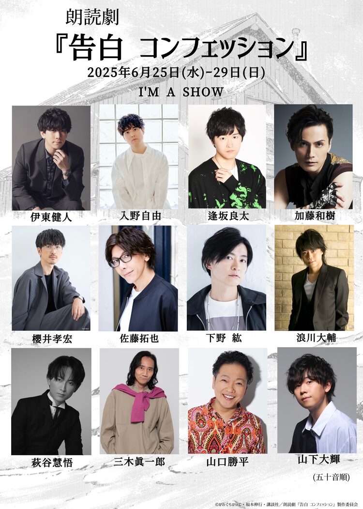 福本伸行原作によるかわぐちかいじ「告白 コンフェッション」の朗読劇が、6月25日から29日までの期間、全10公演で東京・I’M A SHOW(アイマショウ)で開催決定。スタッフ、キャスト情報、チケット情報が公開された。