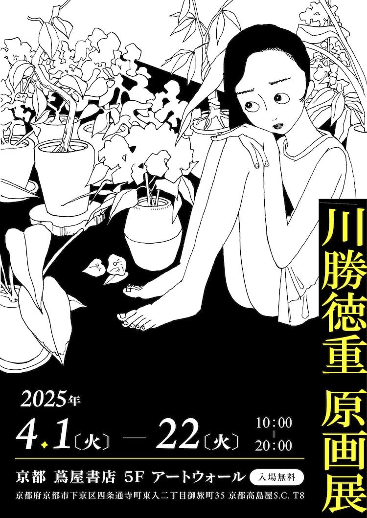 川勝徳重の原画展が、明日4月1日から22日まで京都・京都蔦屋書店で開催される。