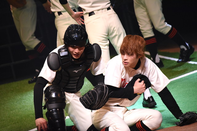 そして三橋と阿部、バッテリーを演じる2人の絆について問われると、西銘は猪野について「アドリブを出してもすぐに突っ込んでくれるし、阿部として引っ張ってくれるんです。三橋と同じく、僕も猪野くんに引っ張ってもらっている。現実でも三橋と阿部みたいに感じています」と役柄に自分たちを重ねる。一方の猪野も「稽古が始まった頃、積極的に仲良くならなきゃと思ったんですけど、駿が人懐っこいので、結局彼のペースに飲み込まれて。あかん負けれられへんなって(笑)。いじったり、“すべらない話”をやったり、ワキャワキャやってました」と、息ぴったりな関係性について語った。