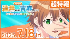 すとぷりのジェルが原作を手がけるショート動画シリーズ「遠井さん」のアニメ映画のタイトルが「遠井さんは青春したい!『バカとスマホとロマンスと』」に決定し、7月18日に全国で公開される。公開日の情報に併せて、“超特報映像(ティザームービー)”がお目見えした。
