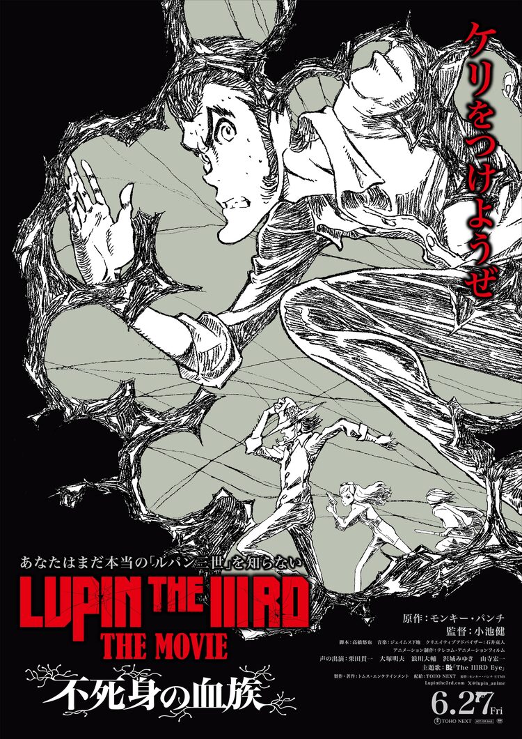 モンキー・パンチ原作によるアニメ「ルパン三世」の完全新作となる劇場版のタイトルが「LUPIN THE IIIRD THE MOVIE 不死身の血族」に決定し、6月27日に公開されることが明らかになった。またティザー予告とティザービジュアルも公開された。