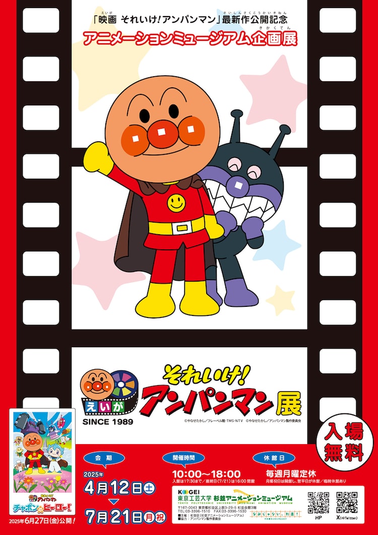 映画「それいけ!アンパンマン」シリーズの企画展が、4月12日から7月21日まで東京・東京工芸大学杉並アニメーションミュージアムで開催される。