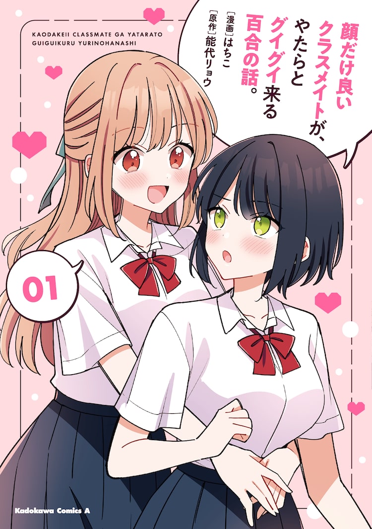 はちこ「顔だけ良いクラスメイトが、やたらとグイグイ来る百合の話。」1巻が、本日4月10日にKADOKAWAから発売された。