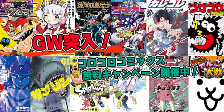 月刊コロコロコミック、週刊コロコロコミック、コロコロアニキ(いずれも小学館)の単行本の一部が、「GW突入!コロコロ作品大集合キャンペーン2025」と題し、5月8日23時59分まで小学館eコミックストアほか各電子書籍配信サイトにて無料公開されている。