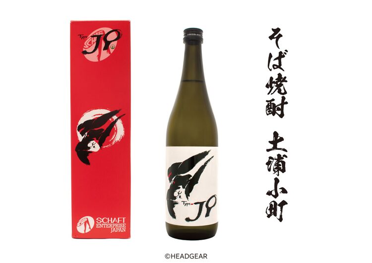 「Type J9」は「機動警察パトレイバー」の敵メカ・グリフォンをイメージして、ラベルや化粧箱がデザインされたコラボ焼酎。グリフォンのイラストは、HEADGEARのキャラクターデザイン・高田明美が描いた。ビンに詰められた「土浦小町」は茨城・土浦産の常陸秋そばを使用し、薫り高く仕上げられている。通常版は税込5000円、特典コースター付は税込6000円。またラベルと同様のイラストがあしらわれた枡の予約販売も実施している。