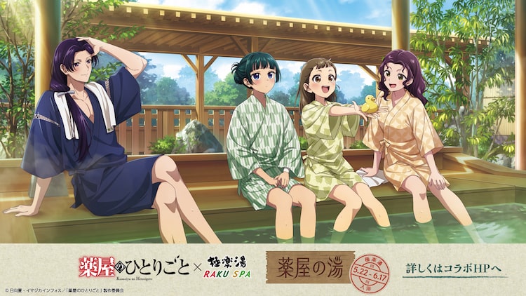 TVアニメ「薬屋のひとりごと」と極楽湯・RAKU SPAのコラボキャンペーンが、5月22日から6月17日まで極楽湯・RAKU SPAグループ5店舗で開催される。