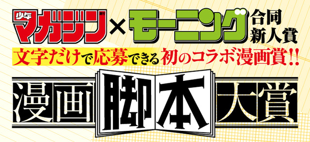 週刊少年マガジンとモーニングによる合同新人賞「漫画脚本大賞」のバナー。