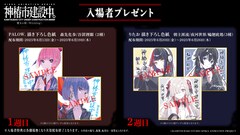 7月3日のTV放送に先がけ、6月13日から2週間限定で上映される劇場先行版。1週目には、キャラクターデザイン・PALOW.が描き下ろした森先化歩、谷置狸眼の色紙から1枚、2週目には、PHASE STUDIOのりたおが描き下ろした朝主派流、夜河世界、輪廻此処の色紙から1枚がランダムで配布される。