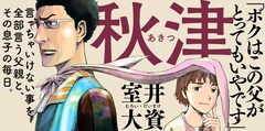 「秋津」はマンガ家の秋津薫と、その息子・いらかの日々を描くコメディ。秋津は長いキャリアで培った世渡りのスキルを駆使し、編集者やアシスタントを相手に全力で自分のわがままを通すなど、周囲の人間を巻き込んで迷惑な行動を起こし続ける。そんなダメ人間の父を心底嫌がるいらかとの、独特な親子関係が描かれる。単行本は全2巻が発売中。