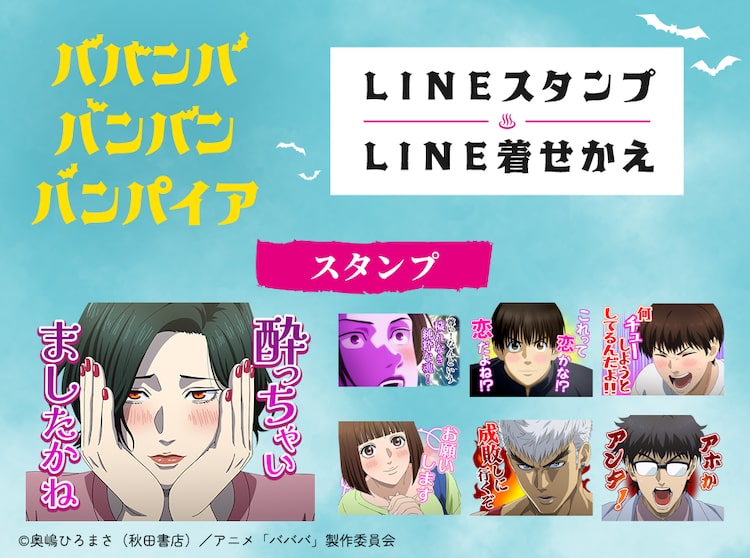 奥嶋ひろまさ原作によるTVアニメ「ババンババンバンバンパイア」のLINEスタンプと着せ替えが発売された。