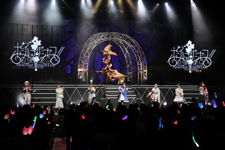 アニメ「ポールプリンセス!!」のライブイベント「ポールプリンセス!! Blue Star Dream Live」が、去る6月14日に千葉県・森のホール21大ホールで開催された。夜の部には星北ヒナノ役の土屋李央、西条リリア役の鈴木杏奈、東坂ミオ役の小倉唯、南曜スバル役の日向未南、御子白ユカリ役の南條愛乃、紫藤サナ役の日高里菜、蒼唯ノア役の早見沙織が出演。2年ぶりにメインキャスト7人が揃い、ポールダンサーとともに全14曲を披露した。
