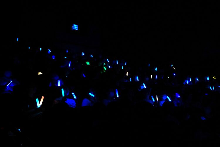 見どころの1つであるバトルシーンは、戦闘を盛り上げるBGMに合わせ観客も応援するようにペンライトを振る。五条悟が放つ術式順転「蒼」には青、術式反転「赫」には赤、虚式「茈」には紫と色を変えながら応援するファンの姿も。一方、終盤の夏油に対しては労りの声や、「誰か気付いてあげて……」という悲痛なメッセージが寄せられた。そんな中で登場した九十九由基には、「どんな女が好みかな?」というセリフに「あなたです!!」など明るい声が上がる。しかし九十九と夏油の会話が進むにつれ、観客が九十九の語りに静かに聞き入っていく様子は、どこか作中の夏油の姿と重なるようでもあった。