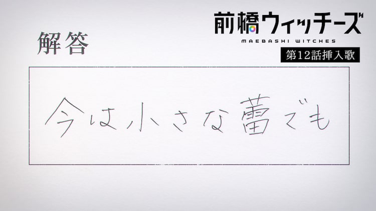 6月22日に最終話となる第12話「魔女はもういいかなって」が放送された「前橋ウィッチーズ」。最終話では記憶を取り戻した前橋ウィッチーズの5人が花屋に帰還し、栄子と改めて向き合う姿が描かれた。「今は小さな蕾でも」はそんな栄子の怒りと悲しみを受け止めて前橋ウィッチーズが歌った楽曲だ。「今は小さな蕾でも」は作詞・作曲・編曲を中村歩、菊池博人が担当。各種音楽配信サービスでは同楽曲のフルサイズが配信されている。