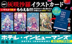 7月6日よりテレ東系列ほかでTVアニメが放送される「ホテル・インヒューマンズ」。アニメの放送開始と最新刊の発売を記念して実施されるノベルティフェアでは、「ホテル・インヒューマンズ」1~11巻のいずれかを1冊購入した人に1枚、全4種の「灰咲沙羅イラストカード」が進呈される。カードの表面にはコンシェルジュの沙羅の鮮やかなカラーイラストがあしらわれた。また裏面は、まるでホテル・インヒューマンズに宿泊しているかのような気分が味わえる、カード型ルームキー風のデザインに仕上げられている。