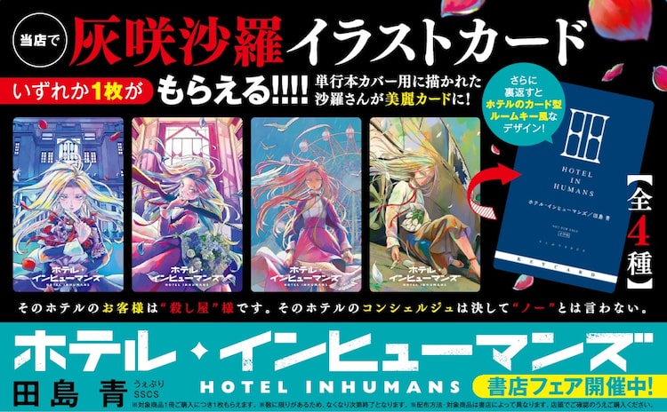 田島青「ホテル・インヒューマンズ」11巻が、本日6月30日に発売。「灰咲沙羅イラストカード」がもらえるフェアが、全国の参加書店で順次展開されている。