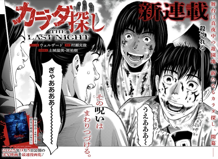 「カラダ探し」はバラバラになった体を見つけ出すまで同じ日を繰り返す、“カラダ探し”を描くホラー。ウェルザードによる小説が原作で、少年ジャンプ+では村瀬克俊による「カラダ探し」「カラダ探し 解」「カラダ探し 異」が連載されてきた。映画版は第1作目が2022年に公開されている。