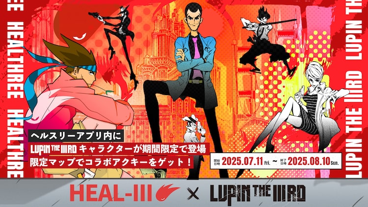 モンキー・パンチ原作によるアニメ「LUPIN THE IIIRD」シリーズと、ヘルスケアゲーム「HEALTHREE(ヘルスリー)」のコラボが、7月11日から8月10日まで実施される。