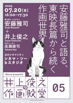 トークイベントのチケットは、シネマシティのWebサイトおよびシネマ・ツーの窓口で販売。7月12日より有料会員・シネマシティズンを対象にした先行販売が行われ、7月13日に一般販売がスタートする。また当日、ロビーではオリジナルグッズや井上のサイン入り著書「井上俊之の作画遊蕩」を販売。購入者の中から抽選で、井上と安藤のサイン入りポスターがプレゼントされる。