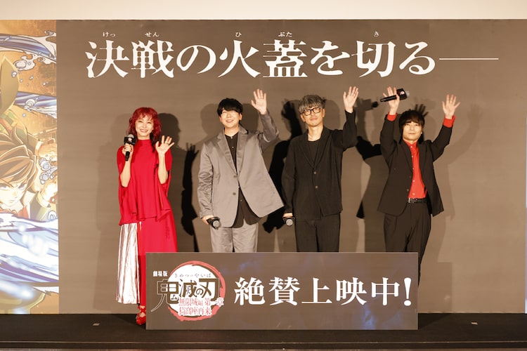 最後の挨拶では花江が「この夏は『鬼滅の刃』で日本が、世界が、盛り上がっていってくれたらいいなというふうに心から思いました」と期待を語る。さらに「第二章、第三章と続きますので、我々もそれに向けて心を燃やしてがんばってまいります」と意気込みを伝えてイベントを締めくくった。