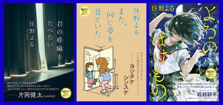 限定カバーの3冊は住野の新刊文庫「腹を割ったら血が出るだけさ」の発売に合わせ、8月上旬より随時出庫。1年間の販売が予定されている。