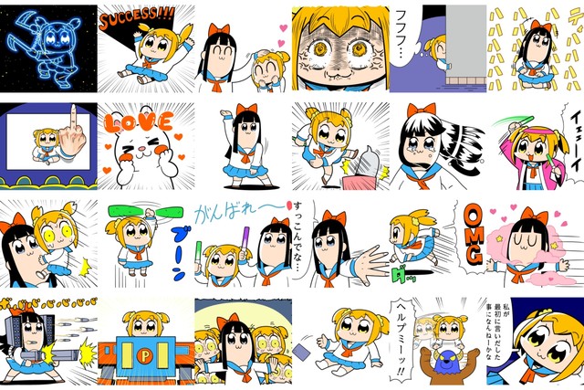 「ポプテピ」動くスタンプ第3弾、中指立てたポプ子やエモく踊るピピ美など