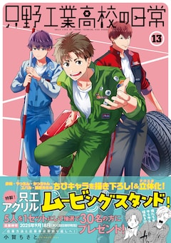 小賀ちさと「只野工業高校の日常」の13巻が、本日8月19日に発売された。刊行を記念し「アクリルムービングスタンド」が抽選で30人に当たるキャンペーンが実施されている。