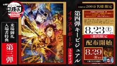 吾峠呼世晴原作による「劇場版『鬼滅の刃』無限城編 第一章 猗窩座再来」の来場御礼入場者特典第3弾としてA5サイズの「第4弾キービジュアル イラストボード」の配布が決定した。